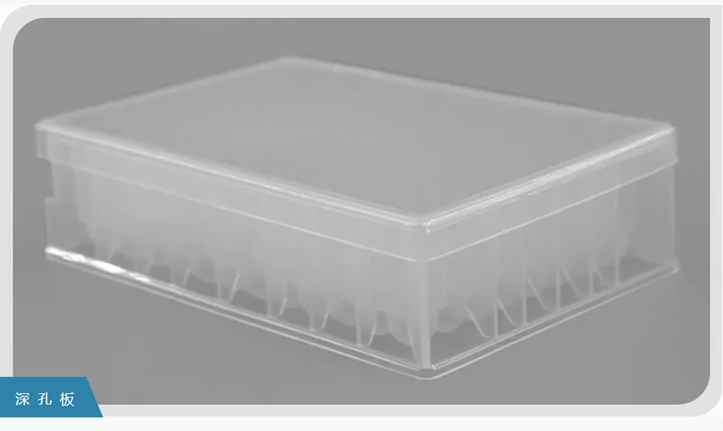 在普通微孔板(主要是96、384孔板)的外觀尺寸基礎上,保持長、寬符合SBS國際規范的同時,增加孔的深度,以此達到增加每個孔的容積的目的。并且為了適應其特定的使用范圍,一方面通過改變制造材料(現多用聚丙烯(PP),個別用聚苯乙烯(PS)),另一方面通過改進表面處理工藝,進而制作成的一類實驗室板材。