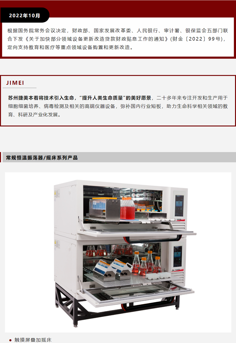 捷美/精騏生命科學儀器——助力專項貸款與財政貼息設備更新改造項目