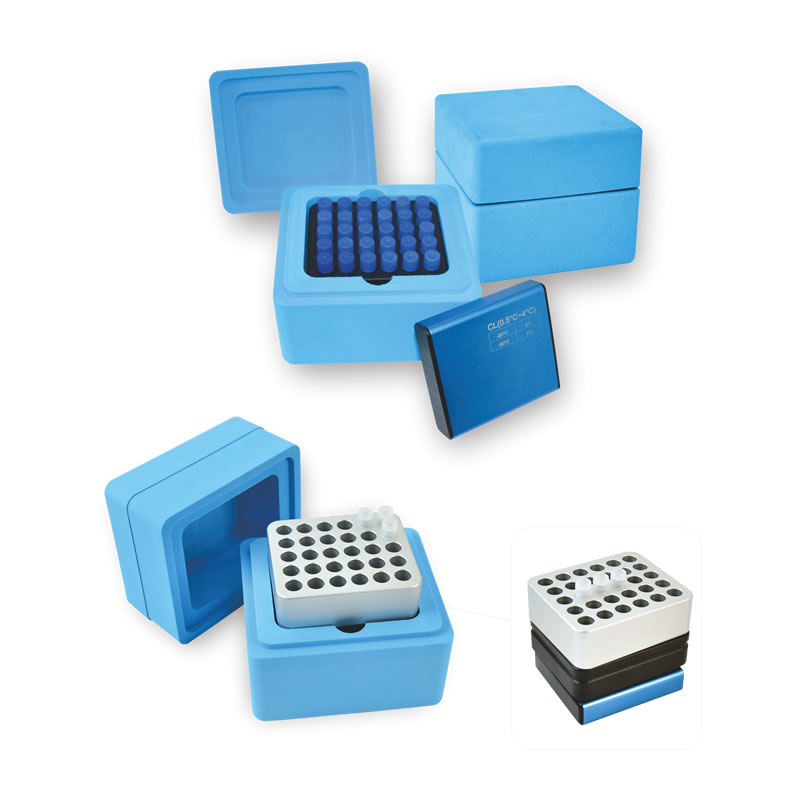 產品易于組裝和使用。 只需簡單地把相應的冰芯存儲在超低溫冰箱中若干小時, 把插入凍存管或樣品板的 導熱模塊放在冷凍芯上即可。