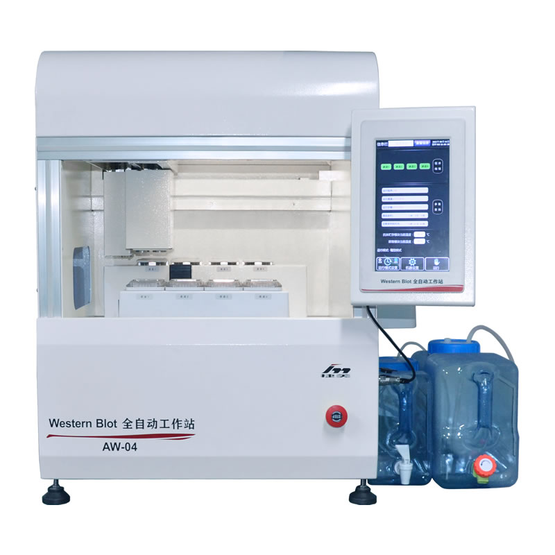 AW系列全自動(dòng)工作站是根據(jù)Western BIot實(shí)驗(yàn)需要,設(shè)計(jì)的一款集制冷低溫儲(chǔ)存、自動(dòng)封閉、自動(dòng)充分結(jié)合蛋白膜、孵育、自動(dòng)洗膜、自動(dòng)注液、自動(dòng)回收廢液、全自動(dòng)程序?qū)崿F(xiàn)抗體結(jié)合蛋白膜和清洗膜的清洗工作站。自動(dòng)化的操作流程可避免手工的操作誤差,確保同批次和不同批次間的重復(fù)性。
